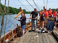 Nach der Lektüre von Hygins Mythen wollte die Klasse 9a wissen, was es in Wirklichkeit mit Skylla und Charybdis auf sich hat, und wie es in der Antike war, mit einem Schiff unterwegs zu sein. Dazu hielt Prof. Pascal Warnking einen spannenden Vortrag, gefolgt von einem Besuch auf dem Schiff…