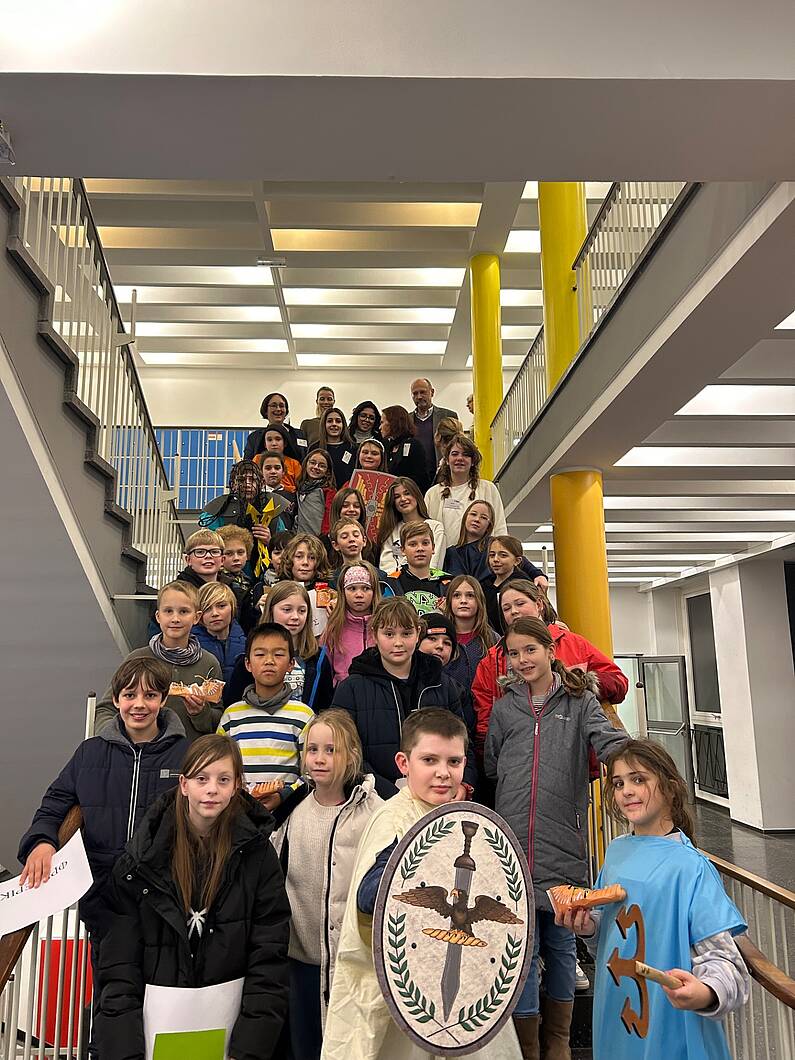In einer spannenden Lateinstunde konnten die Kinder einen Eindruck des modernen Lateinunterrichts gewinnen, erste Vokabeln und Grammatikregeln kennenlernen und sie haben erfahren, dass Latein doch gar nicht tot ist, sondern sich in vielen Alltagsgegenständen und Redewendungen wiederfindet. Nach einer kurzen Schnupperstunde Griechisch konnten die Kinder die Spiele der Römer erkunden, Selfies in Outfits der Römer machen oder ihre Namen in griechischen Buchstaben schreiben. Alles in allem war es ein spannender Nachmittag mit vielen interessierten Kinderaugen, der nach ihren Angaben das Interesse an der Sprache verstärkt hat. Vielen Dank an die mitwirkenden Schülerinnen und Schüler und die Fachschaften Latein und Griechisch, die den spannenden Nachmittag gestaltet haben. Gratias agimus!